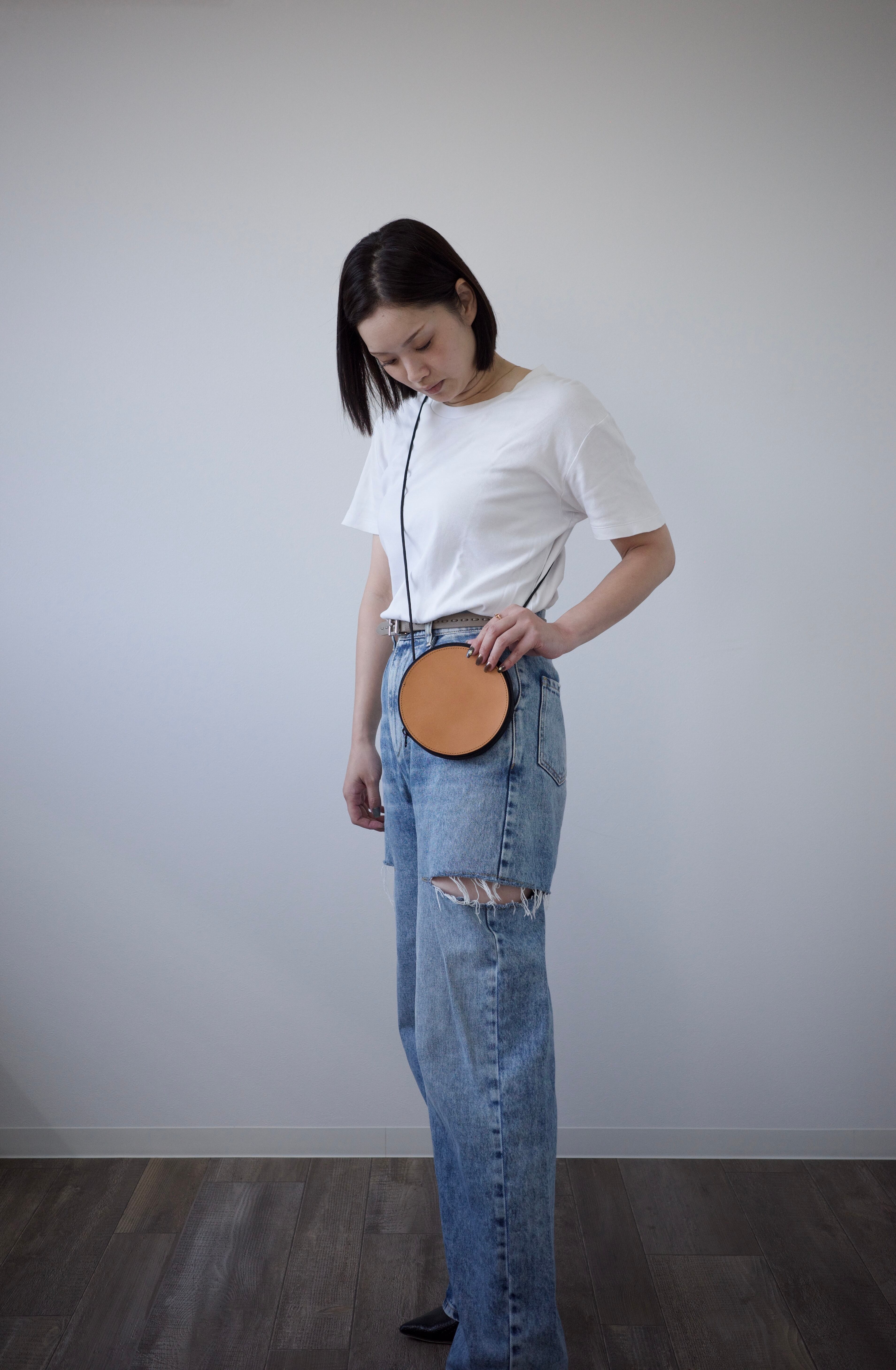帆布と本革を組み合わせた、サークル型サコッシュ